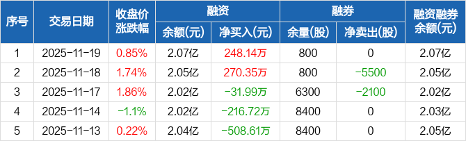 国科天成:融资净买入248.14万元,融资余额2.07亿元(11-19)