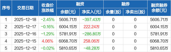 艾芬达:融资净偿还397.43万元,融资余额5606.71万元(12-18)