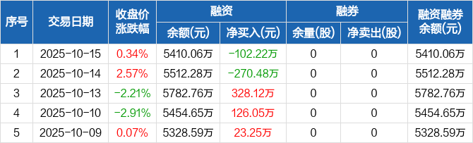 美信科技:融资净偿还102.22万元,融资余额5410.06万元(10-15)