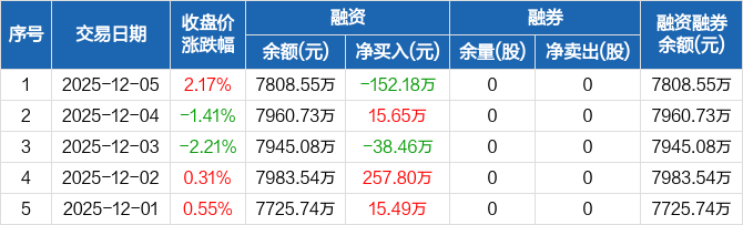 美信科技:融资净偿还152.18万元,融资余额7808.55万元(12-05)