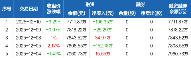 美信科技:融资净偿还106.35万元,融资余额7711.87万元(12-10)