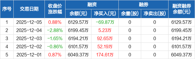 辰奕智能:融资净偿还69.87万元,融资余额6129.57万元(12-05)