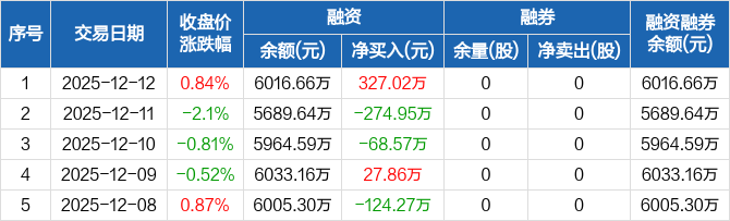辰奕智能:融资净买入327.02万元,融资余额6016.66万元(12-12)