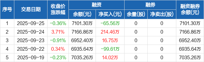 黄山谷捷:融资净偿还65.56万元,融资余额7101.3万元(09-25)