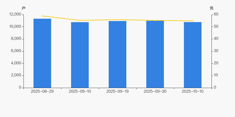 截至2025年10月10日,公司最新总股本为8000万股,其中流通股本为2000万股。户均持有流通股数量由上期的1818股上升至1856股,户均流通市值10.18万元。