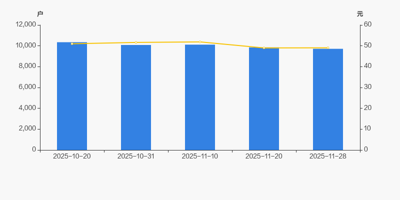 2025年10月20日至今,公司股东户数有所下降,区间跌幅为6.13%。2025年10月20日至2025年11月28日区间股价下降3.80%。