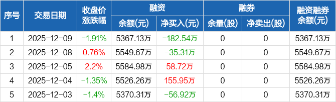 黄山谷捷:融资净偿还182.54万元,融资余额5367.13万元(12-09)