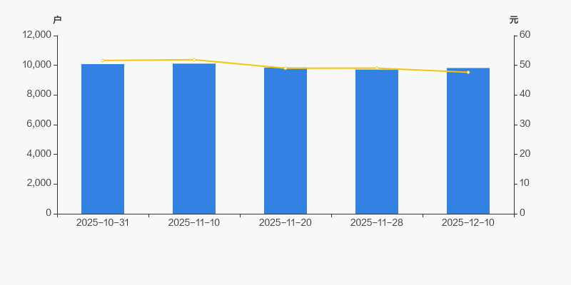 2025年10月31日至今,公司股东户数有所下降,区间跌幅为2.61%。2025年10月31日至2025年12月10日区间股价下降7.69%。