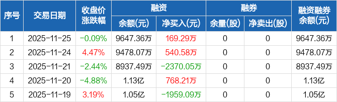 建发致新:融资净买入169.29万元,融资余额9647.36万元(11-25)