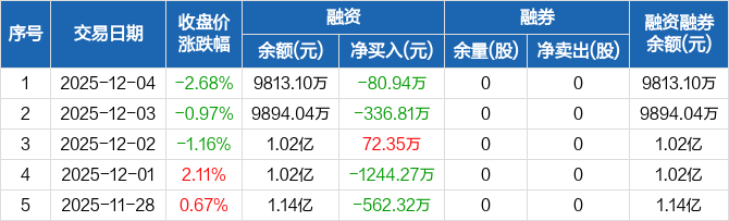 美新科技:融资净偿还80.94万元,融资余额9813.1万元(12-04)