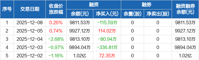 美新科技:融资净偿还115.59万元,融资余额9811.53万元(12-08)
