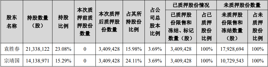 诺瓦星云:实控人袁胜春和宗靖国合计质押7.38%公司股份