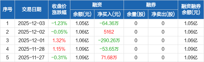 肯特股份:融资净偿还64.36万元,融资余额1.05亿元(12-03)