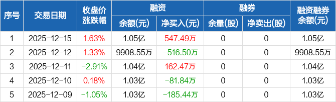 肯特股份:融资净买入547.49万元,融资余额1.05亿元(12-15)