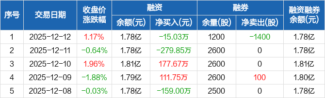 六九一二:融资净偿还15.03万元,融资余额1.78亿元(12-12)