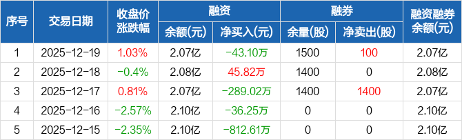 瑞迪智驱:融资净偿还43.1万元,融资余额2.07亿元(12-19)