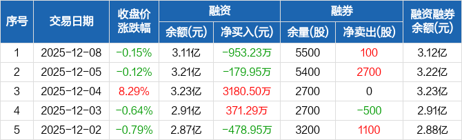 慧翰股份:融资净偿还953.23万元,融资余额3.11亿元(12-08)