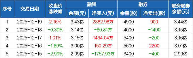 慧翰股份:融资净买入2882.98万元,融资余额3.43亿元(12-19)