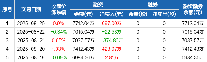 惠通科技:融资净买入697万元,融资余额7712.04万元(08-25)