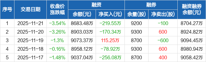 超研股份:融资净偿还219.55万元,融资余额8683.48万元(11-21)