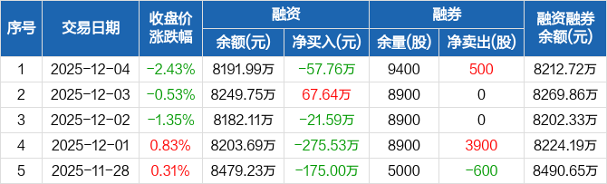 超研股份:融资净偿还57.76万元,融资余额8191.99万元(12-04)