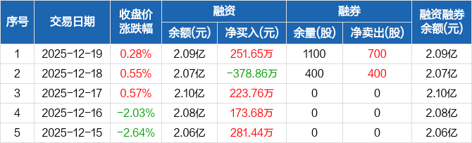 乔锋智能:融资净买入251.65万元,融资余额2.09亿元(12-19)