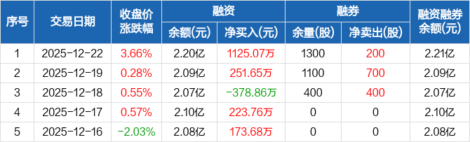 乔锋智能:融资净买入1125.07万元,融资余额2.2亿元(12-22)