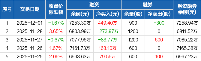 绿联科技:融资净买入449.4万元,融资余额7253.39万元(12-01)