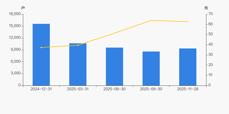 2024年12月31日至今,公司股东户数显著下降,区间跌幅为39.92%。2024年12月31日至2025年11月28日区间股价上涨68.03%。