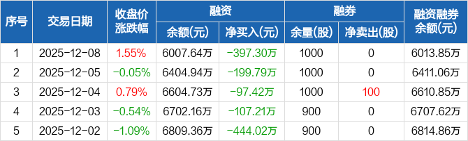 绿联科技:连续5日融资净偿还累计1245.75万元(12-08)
