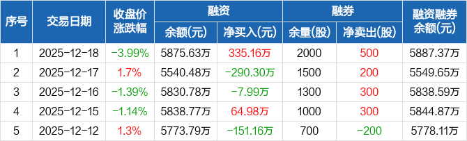 绿联科技:融资净买入335.16万元,融资余额5875.63万元(12-18)