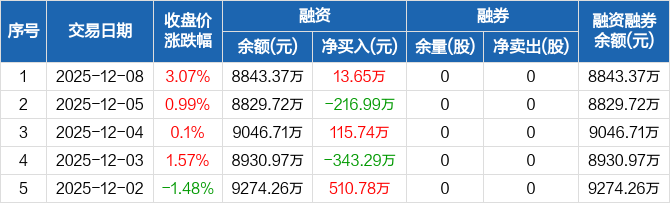 富特科技:融资净买入13.65万元,融资余额8843.37万元(12-08)