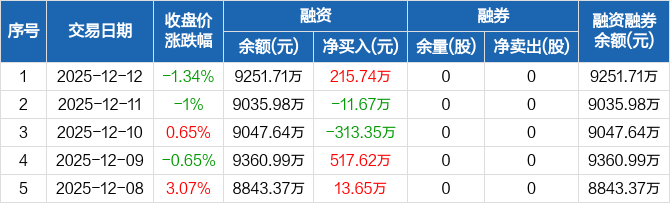 富特科技:融资净买入215.74万元,融资余额9251.71万元(12-12)