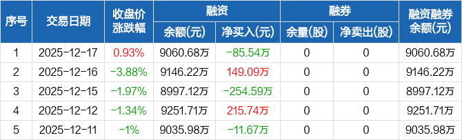 富特科技:融资净偿还85.54万元,融资余额9060.68万元(12-17)