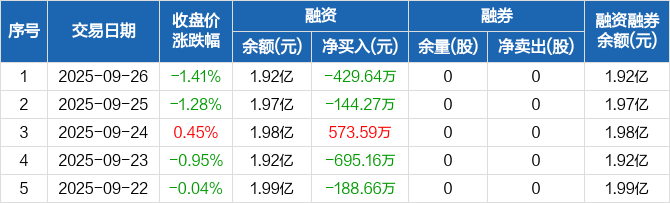 新铝时代:融资净偿还429.64万元,融资余额1.92亿元(09-26)