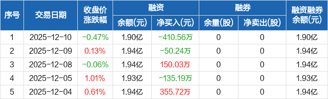 新铝时代:融资净偿还410.56万元,融资余额1.9亿元(12-10)
