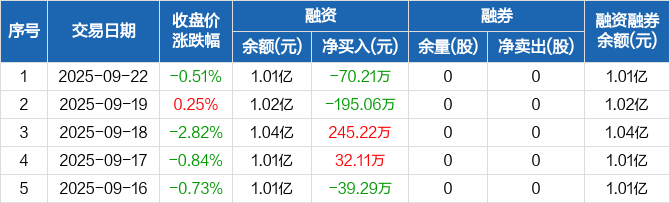 长联科技:融资净偿还70.21万元,融资余额1.01亿元(09-22)