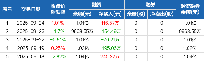 长联科技:融资净买入116.57万元,融资余额1.01亿元(09-24)