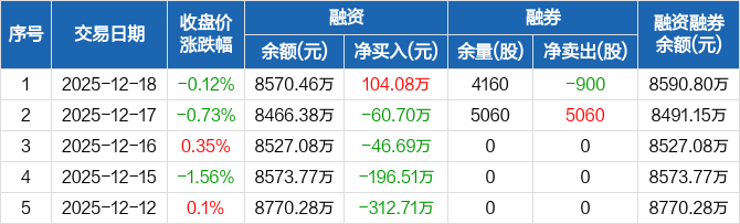 长联科技:融资净买入104.08万元,融资余额8570.46万元(12-18)