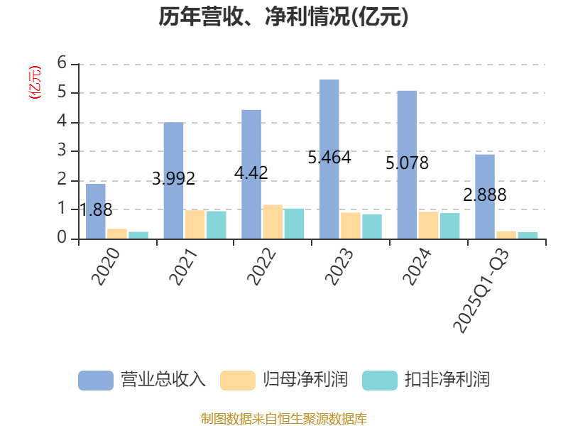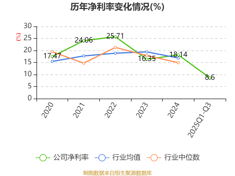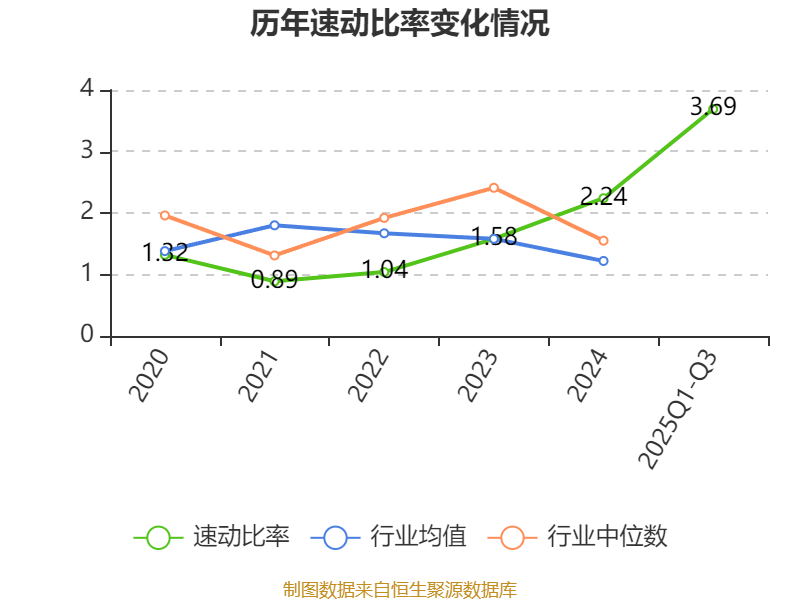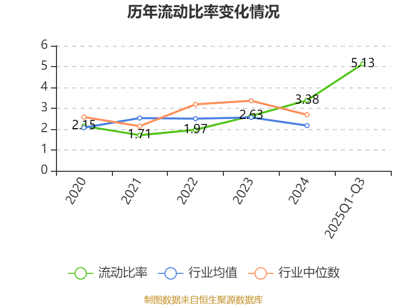 2025年前三季度,公司流动比率为5.13,速动比率为3.69。