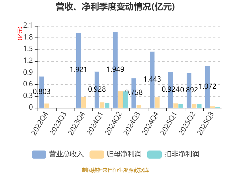 资产重大变化方面,截至2025年三季度末,公司交易性金融资产合计占公司总资产的17.26%,上年末为0;其他非流动资产较上年末增加4922.12%,占公司总资产比重上升11.47个百分点;应收票据及应收账款较上年末减少19.45%,占公司总资产比重下降9.54个百分点;存货较上年末减少0.27%,占公司总资产比重下降8.92个百分点。