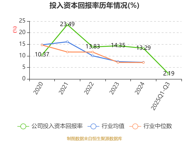 盈利能力方面, 2025年前三季度公司加权平均净资产收益率为2.46%。公司2025年前三季度投入资本回报率为2.19%,较上年同期下降6个百分点。