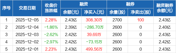 壹连科技:融资净买入308.3万元,融资余额2.43亿元(12-05)