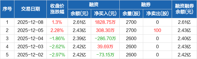 壹连科技:融资余额2.61亿元,创历史新高(12-08)