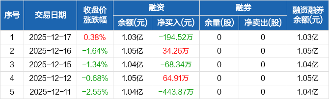 广东建科融资融券信息显示,2025年12月17日融资净偿还194.52万元;融资余额1.03亿元,较前一日下降1.86%。