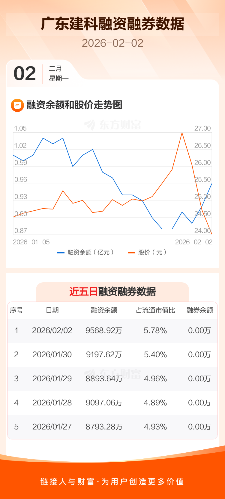 交易所最新数据显示,广东建科于2026年2月2日获融资买入724.53万元,融资偿还353.22万元,当日融资净买入371.31万元。目前,该股融资余额9568.92万,占流通市值比例为5.78%。