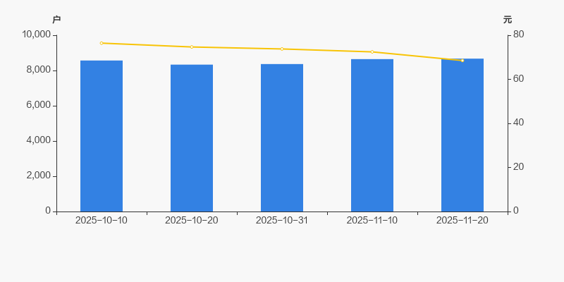 自2025年10月20日以来,公司股东户数连续3期上涨,截至目前增幅为4.08%。2025年10月20日至2025年11月20日区间股价下降8.24%。
