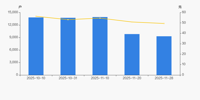 2025年10月10日至今,公司股东户数显著下降,区间跌幅为32.73%。2025年10月10日至2025年11月28日区间股价下降12.22%。