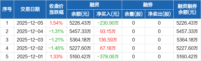 泽润新能:融资净偿还230.9万元,融资余额5226.43万元(12-05)