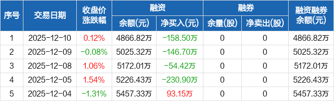 泽润新能:连续4日融资净偿还累计590.51万元(12-10)